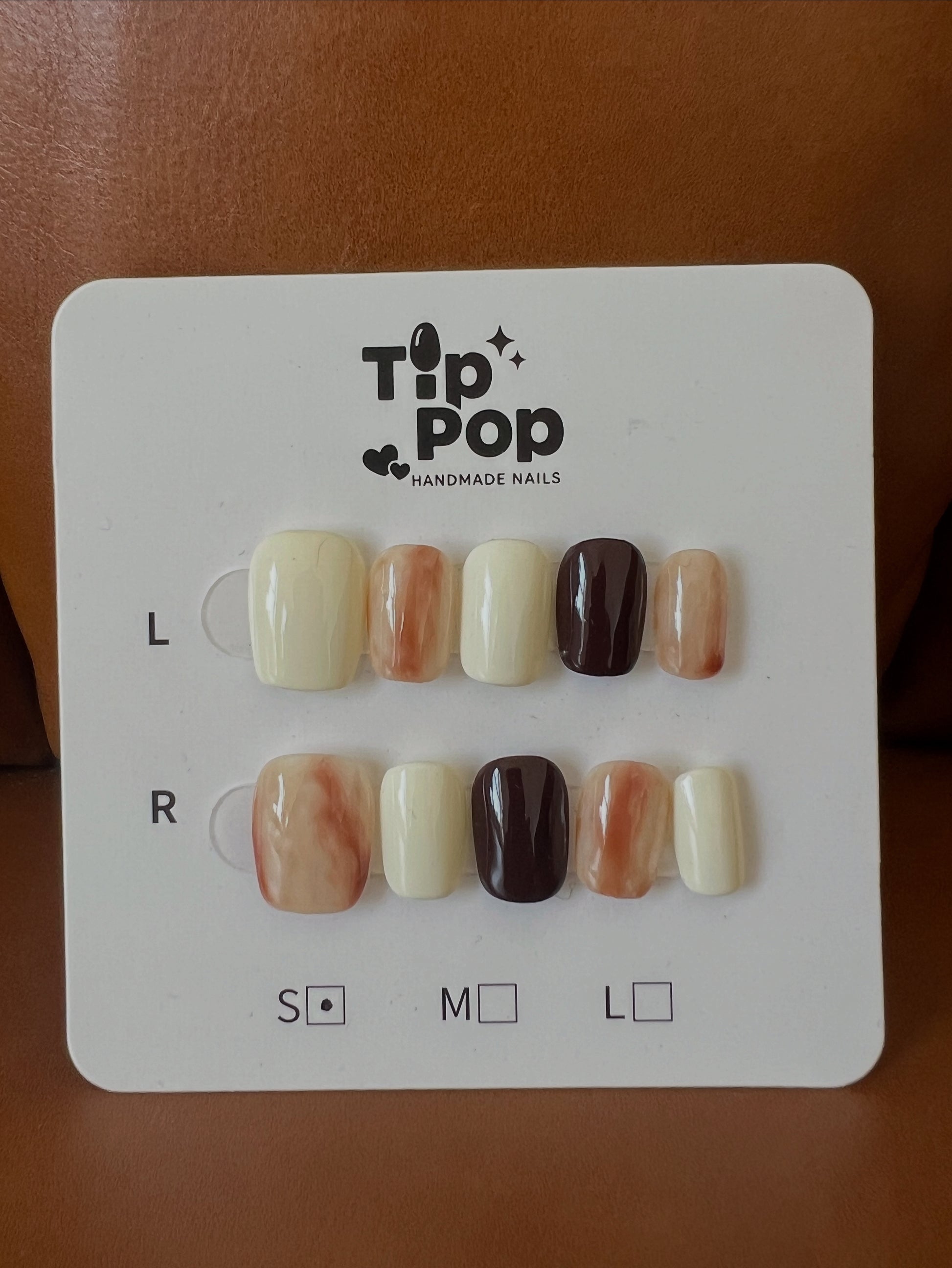 Creamy ivory meets soft caramel marble and deep espresso brown for the perfect fall-inspired manicure. A cozy, coffeehouse vibe you can wear on your fingertips.