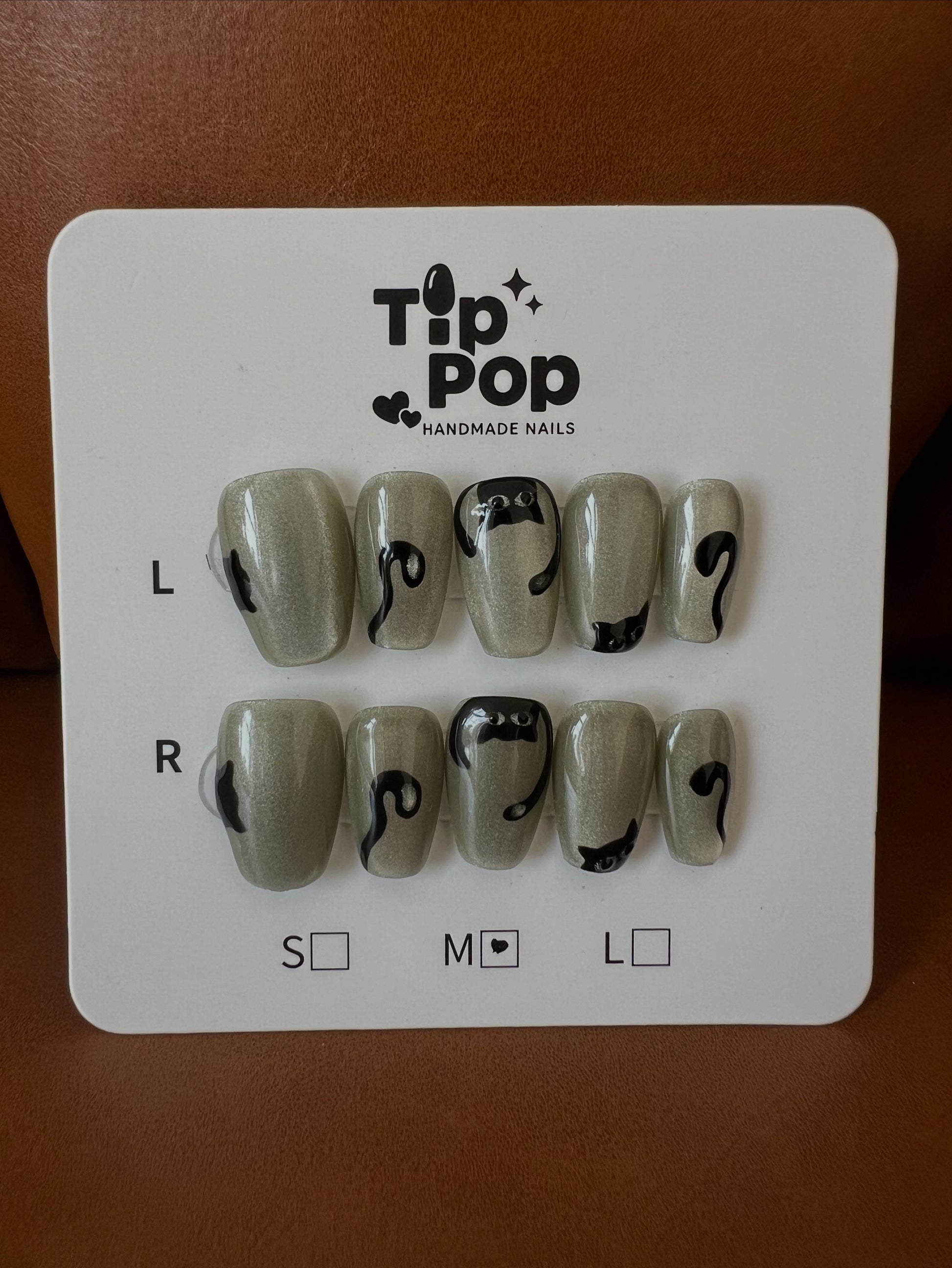 Playful black cat silhouettes on a soft silver-gray base — chic, fun, and just the right amount of mysterious. Perfect for cat lovers and anyone who loves a touch of whimsy in their style.